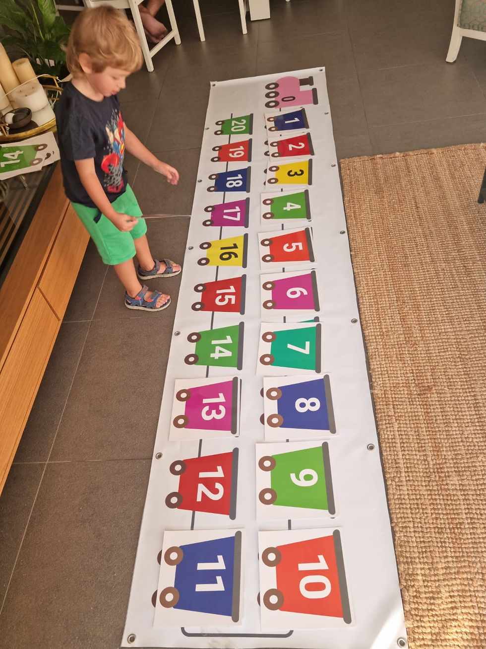 אפשרות להוסיף פקקים ולשחק משחק ריצות של התאמה ויש אפשרות להוסיף את ערכת הקרונות- ולבקש מהילד התאמה של מספר למספר.